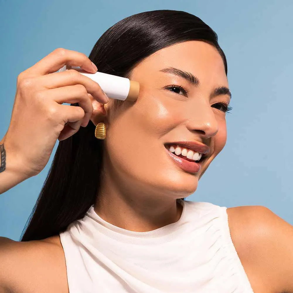1. Inicie sua rotina facial diária aplicando o stick diretamente sobre as áreas desejadas; rosto pescoço colo braços etc;