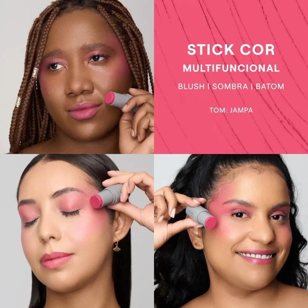 Com sua fórmula 100% vegana, este stick multifuncional pode ser usado como blush, sombra e batom, trazendo praticidade e versatilidade para o seu dia a dia.