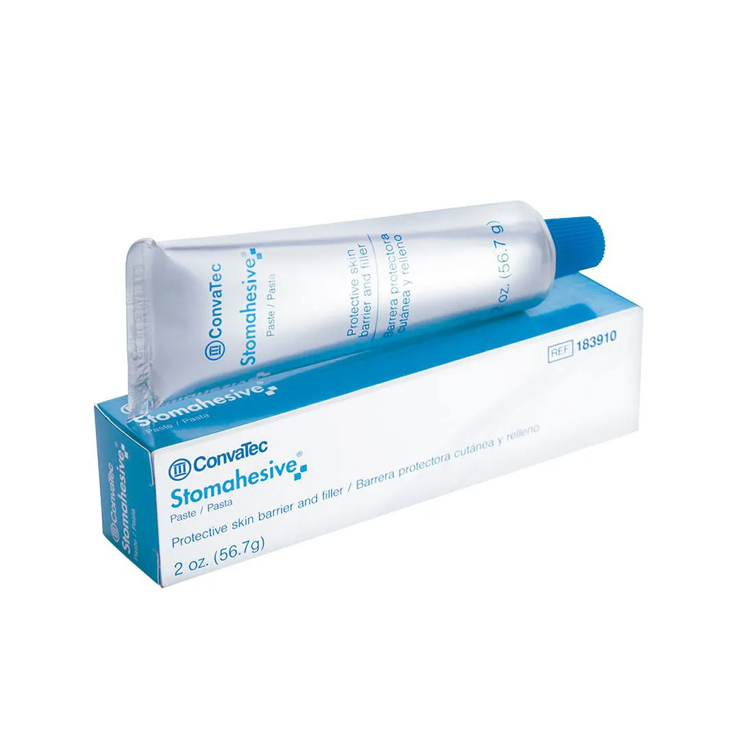 Stomahesive pasta é um material de prenchimento, altamente eficaz como barreira protetora e selante da pele, para uso com equipamento de estomias. Também é utilizada para proteger a pele exposta ao redor de locais de fístulas entre a base da estomia e o orifício da placa protetora e como material de prenchimento para dobras da pele e superfícies cutâneas irregulares.