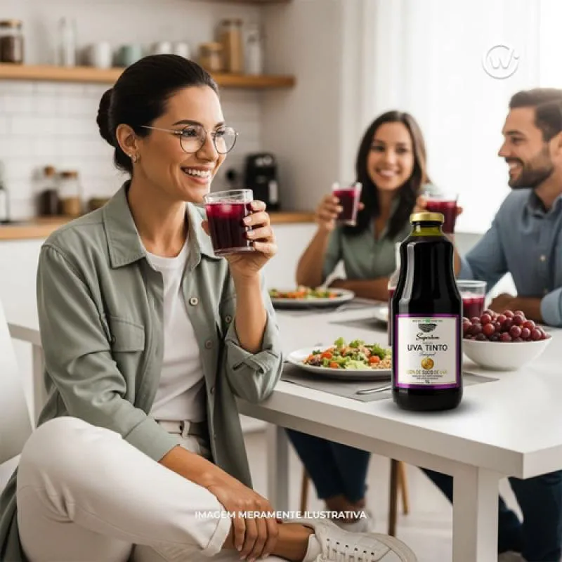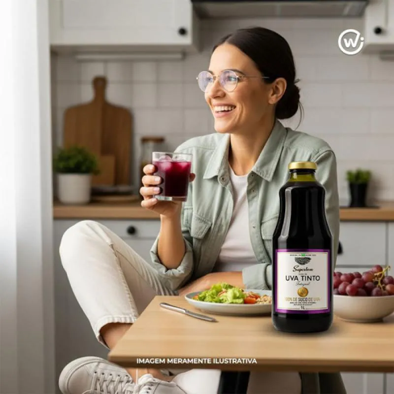 O Suco de Uva Tinto Integral Superbom é elaborado com 100% de uva‑Isabel, mantendo a fruta em sua forma integral e sem adição de açúcares ou conservantes.