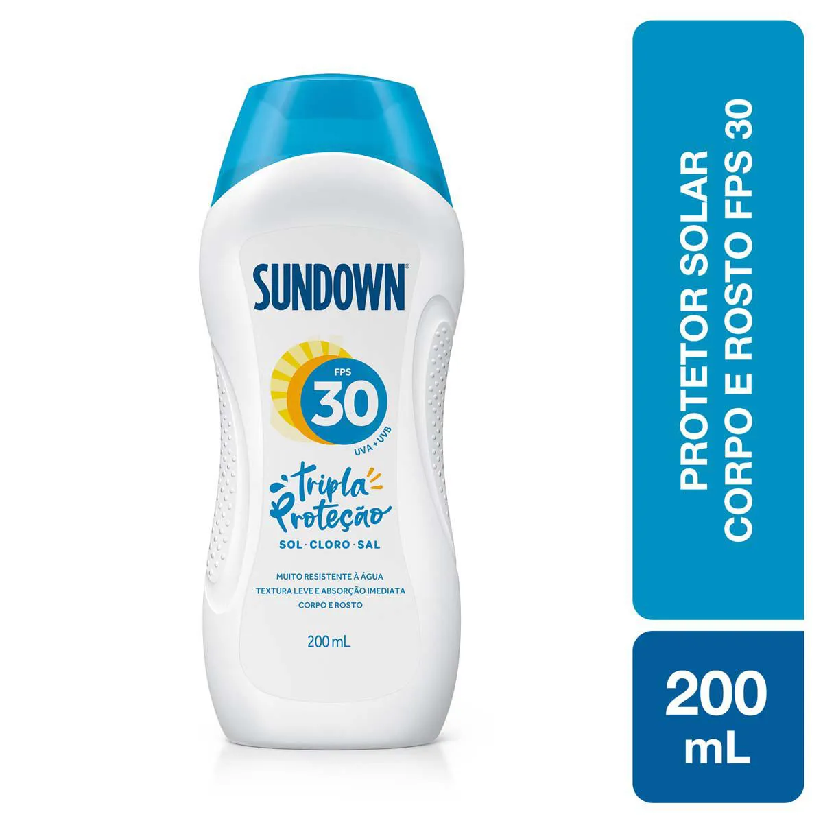 O Sundown Praia e Piscina FPS 30 é um protetor solar que oferece tripla proteção contra raios UVA+UVB, cloro das piscinas e água salgada do mar. Serve para proteger todos os tipos de pele, podendo ser aplicado no rosto e no corpo, garantindo 2 horas de proteção em condições extremas como praia, piscina e práticas de esportes ao ar livre.