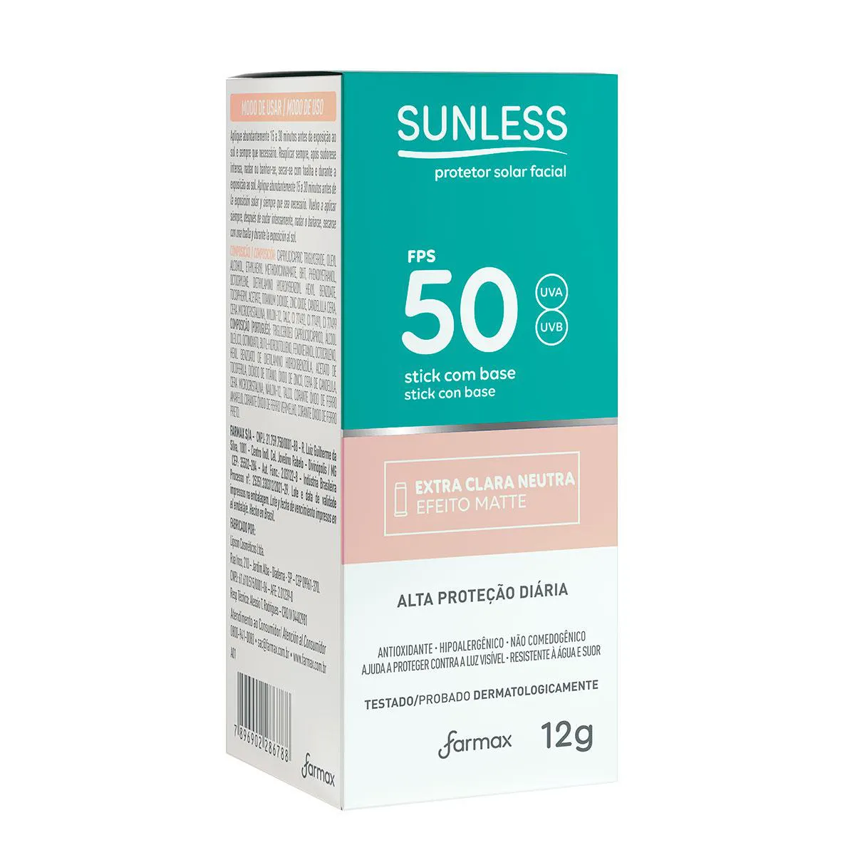 Protetor Solar Facial Sunless Stick FPS 50 com Base Extra Clara Neutra 12g