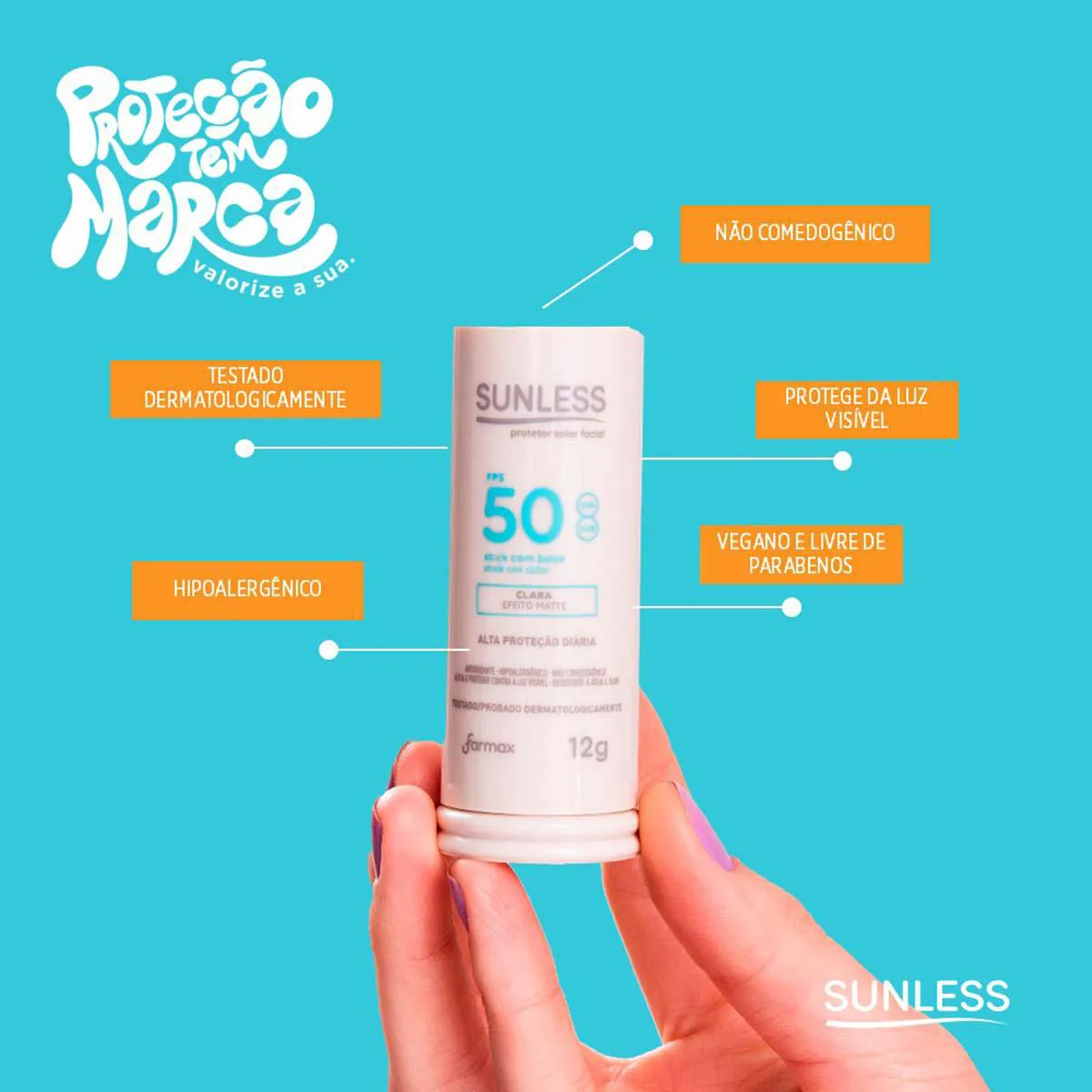 Protetor Solar Facial Sunless Stick FPS 50 Média 12g