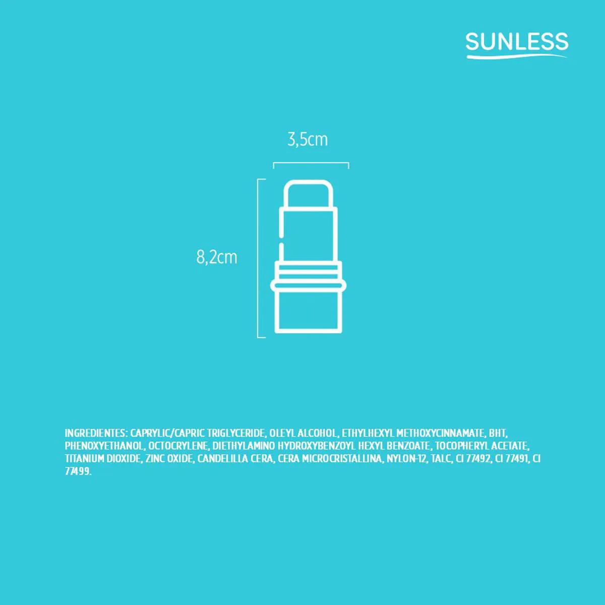 Resistente à água e ao suor e com intensa proteção contra os raios UVA e UVB, o protetor solar stick da Sunless oferece ação antioxidante que ajuda a combater o envelhecimento precoce da pele, além de ajudar a proteger contra a luz visível.