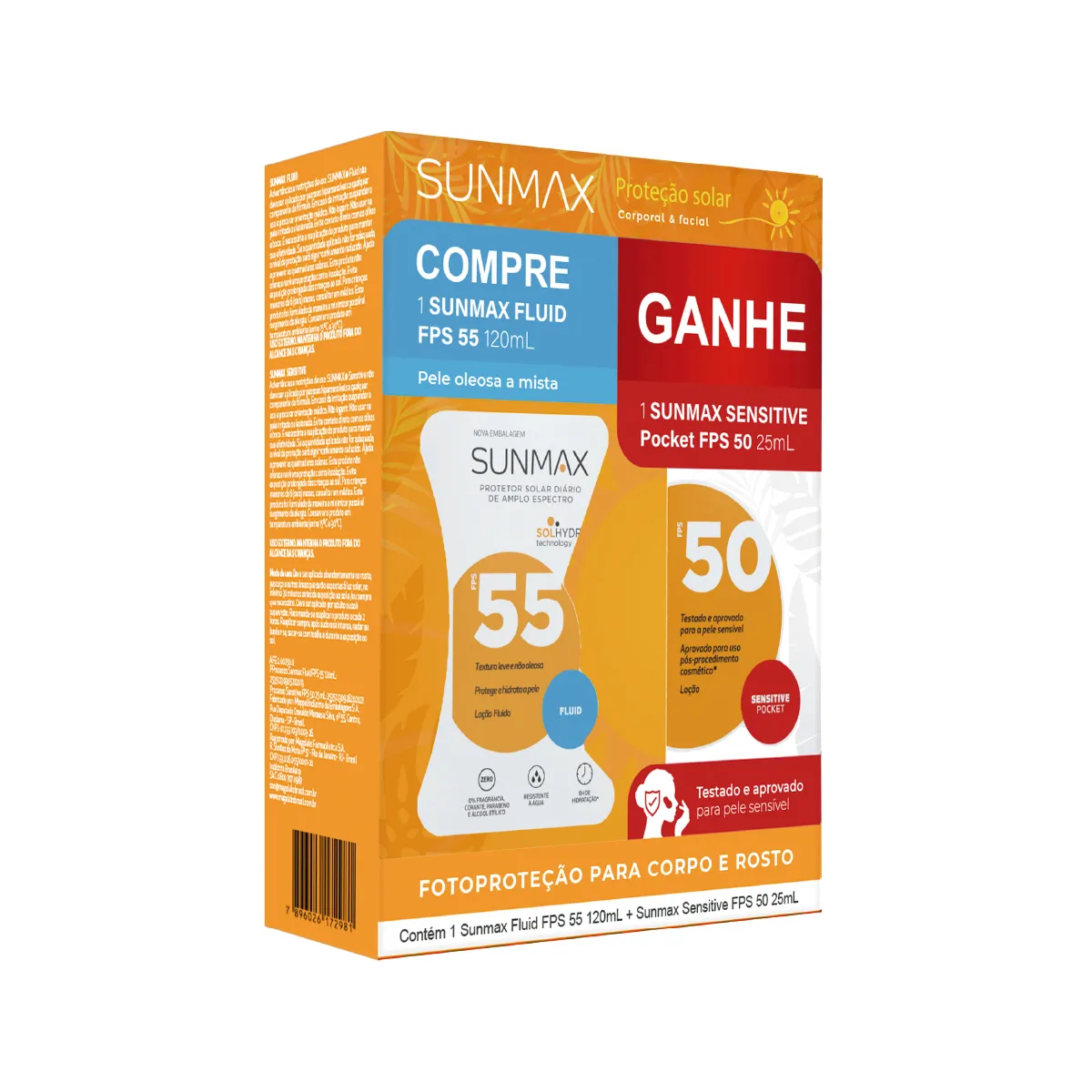 Kit Protetor Solar Sunmax Fluid FPS 55 120ml + Sensitive Pocket FPS 50 25ml