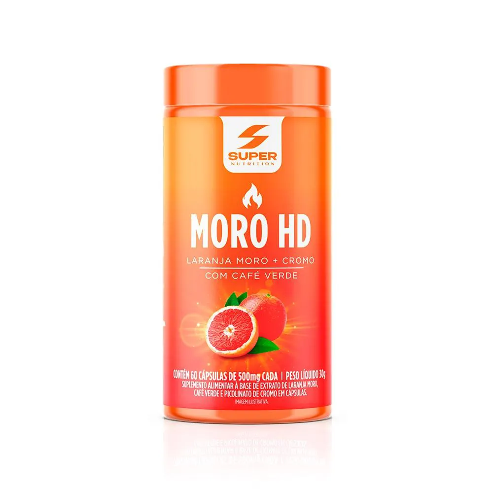Moro HD é um suplemento em cápsulas com 400 mg de extrato de laranja moro, café verde e cromo, que auxilia no metabolismo de proteínas, carboidratos e gorduras. A laranja moro é uma fruta única pelas propriedades da polpa avermelhada devido à alta presença de antocianina. Moro HD é uma fórmula que tem também cafeína e ácido clorogênico, zero calorias. Pote com 60 cápsulas. O QUE É LARANJA MORO?