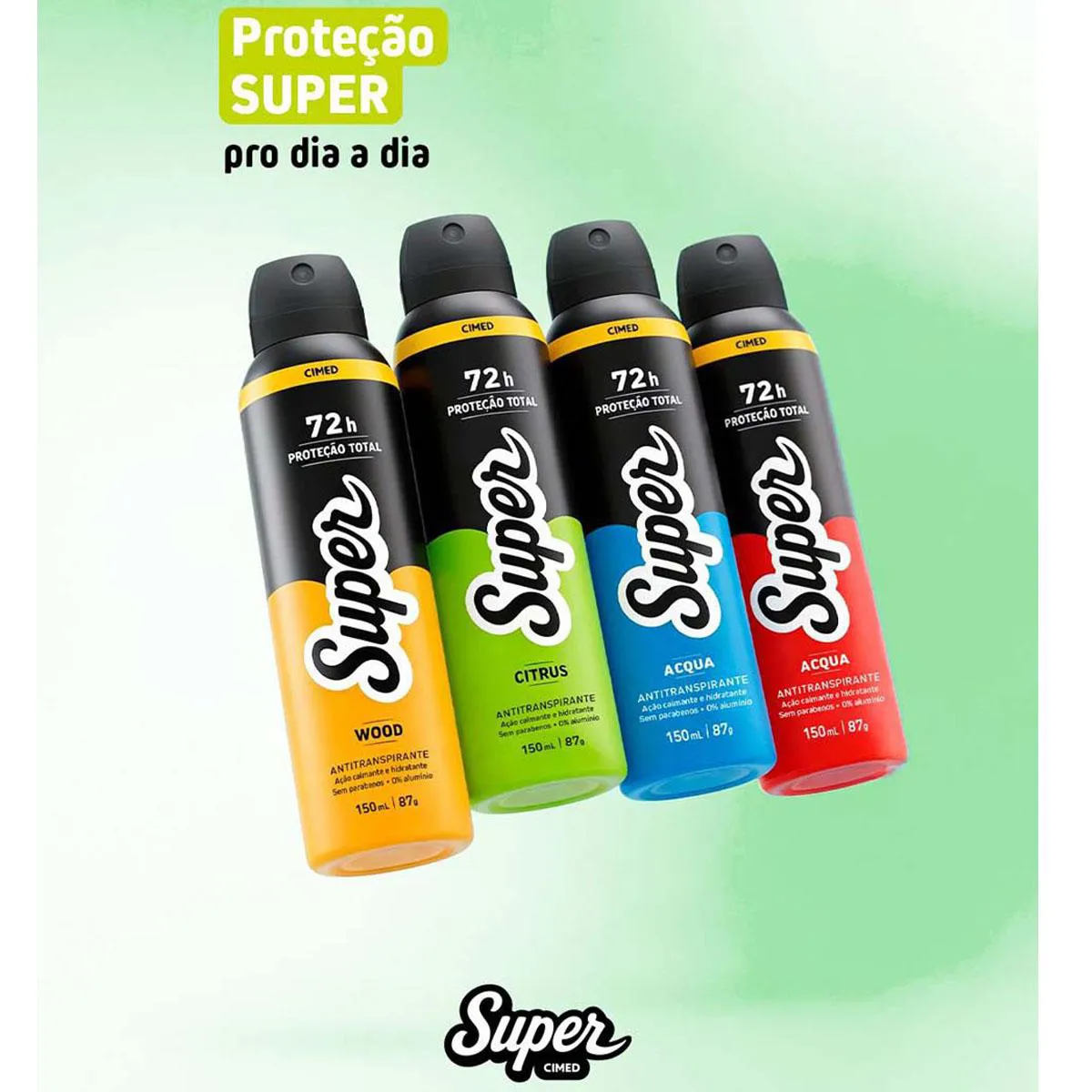 O Desodorante Antitranspirante Aerosol Super Acqua é desenvolvido para proporcionar proteção prolongada contra suor e maus odores, oferecendo até 72 horas de eficácia. Com fragrância Acqua leve e refrescante, ele entrega sensação de frescor durante todo o dia. Sua fórmula é livre de parabenos e alumínio, garantindo ação calmante e hidratante para a pele das axilas.