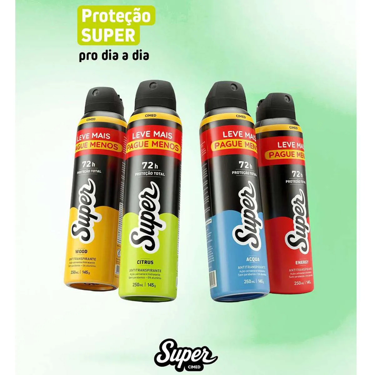 O Desodorante Antitranspirante Aerosol Super Acqua foi desenvolvido para oferecer proteção prolongada contra transpiração e mau odor, garantindo até 72 horas de eficácia. Sua fragrância Acqua entrega sensação de frescor e leveza durante todo o dia. Além disso, sua fórmula é livre de parabenos e alumínio, proporcionando ação calmante e hidratante para a pele das axilas.