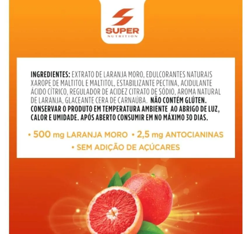 Suplemento em goma com extrato de laranja moro, a maior concentração de antocianinas do mercado. Quantidade: 30 gomasPeso: 105 g