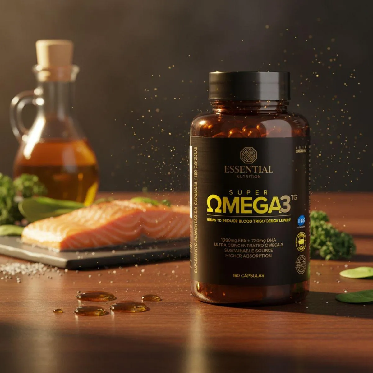 - Óleo de peixe concentrado em EPA e DHA.