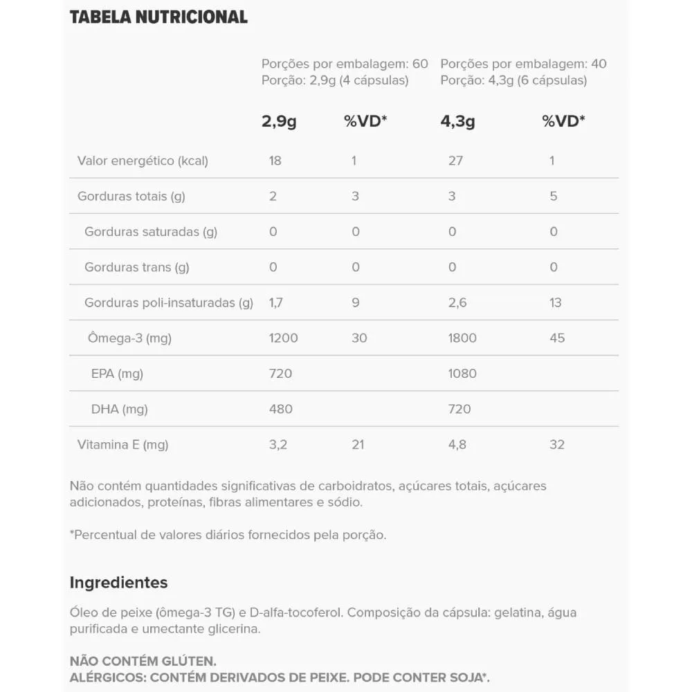 O Super Omega 3 TG Essential Nutrition é um suplemento de ômega 3 de alta pureza e concentração, que oferece 1080 mg de EPA e 720 mg de DHA por porção, na forma triglicerídea (TG), garantindo melhor reconhecimento e aproveitamento pelo organismo. Cada cápsula oferece 500 mg de ômega 3 com certificação IFOS®