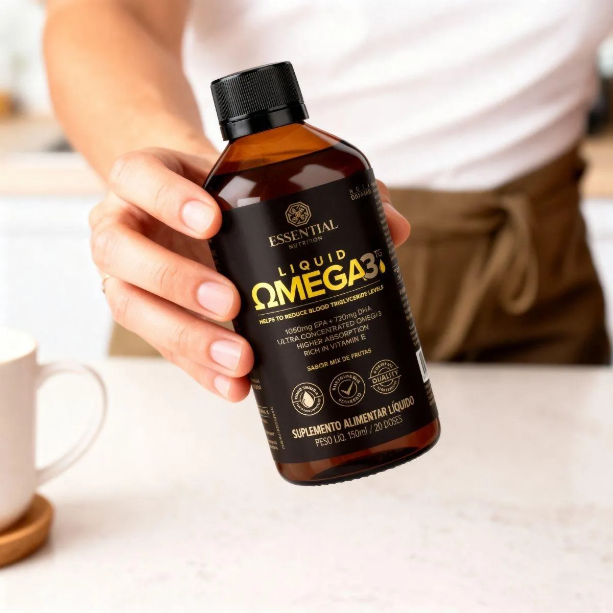 O diferencial está na forma líquida de alta concentração, ideal para quem busca flexibilidade na dosagem, e na pureza do óleo evidenciada pelo sabor leve.