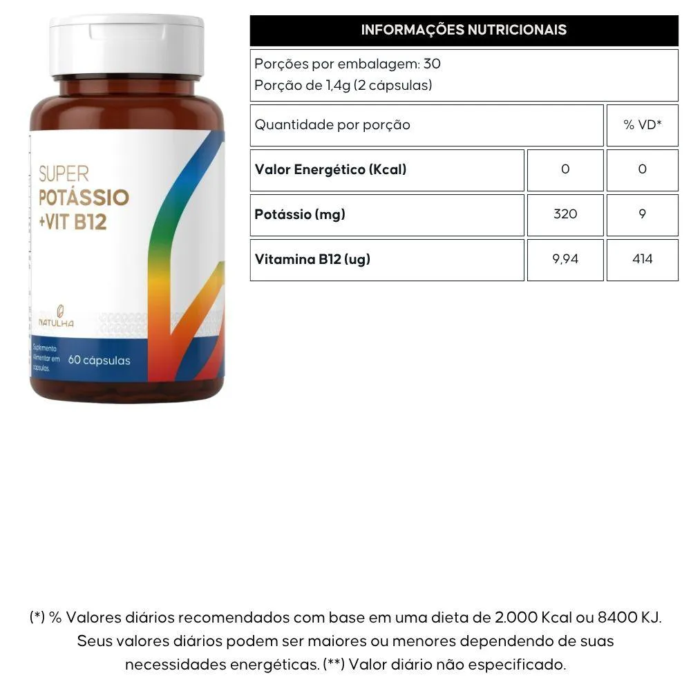 Super Potássio + Vitamina B12 60 Cápsulas - Natulha