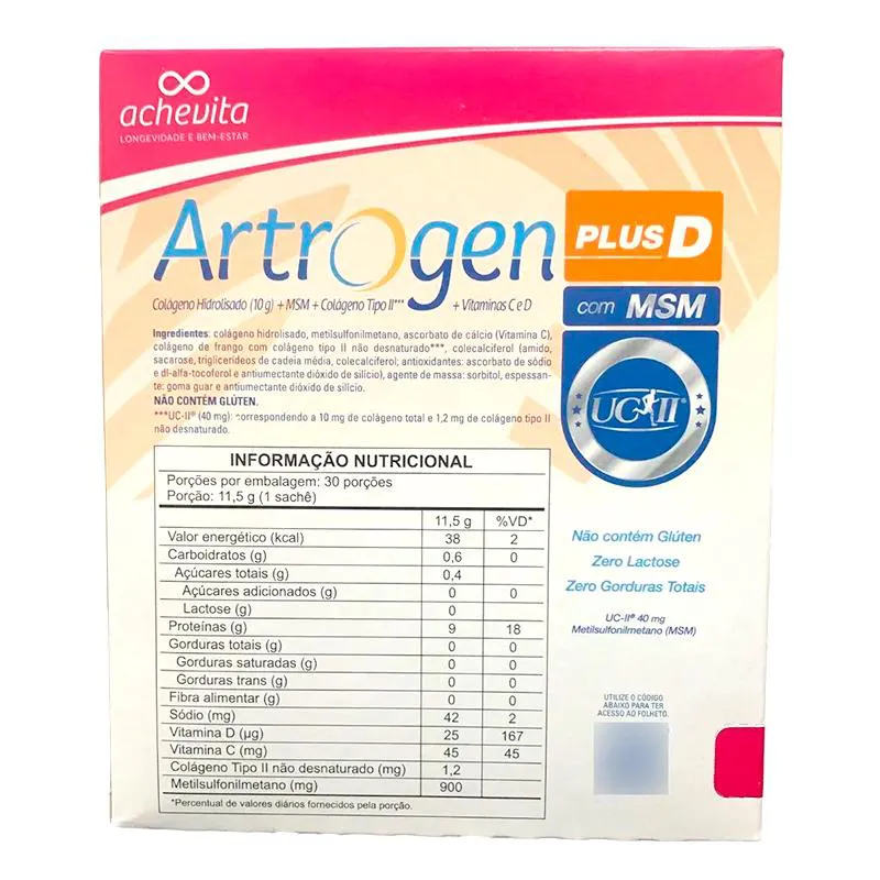 O colágeno Artrogen Plus D é um suplemento alimentar em pó formulado especialmente para quem busca fortalecer as articulações e melhorar a mobilidade. Sua combinação exclusiva de colágeno tipo II, colágeno hidrolisado, vitaminas C e D, além de proteínas e MSM (Metilsulfonilmetano), oferece suporte essencial para a saúde das articulações.