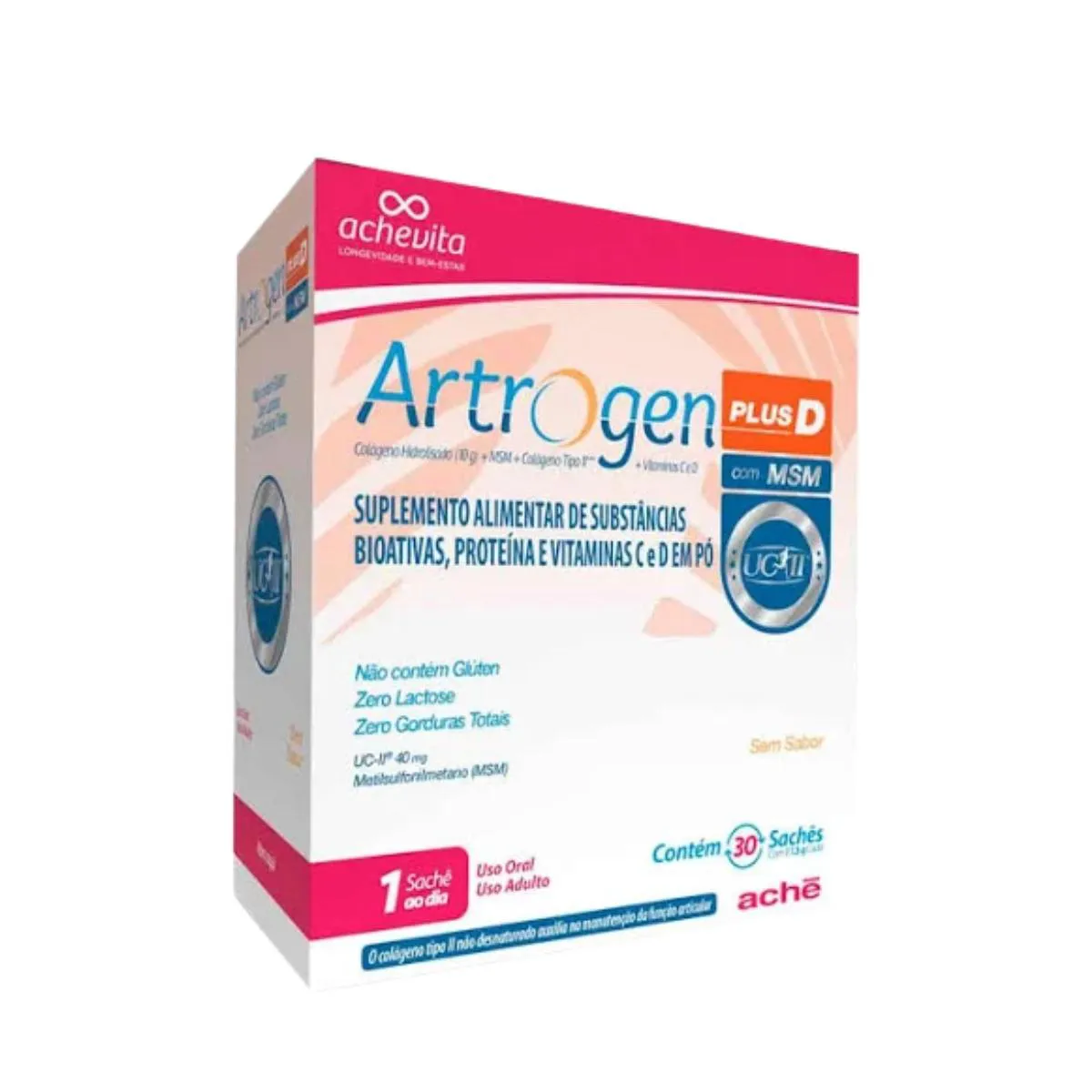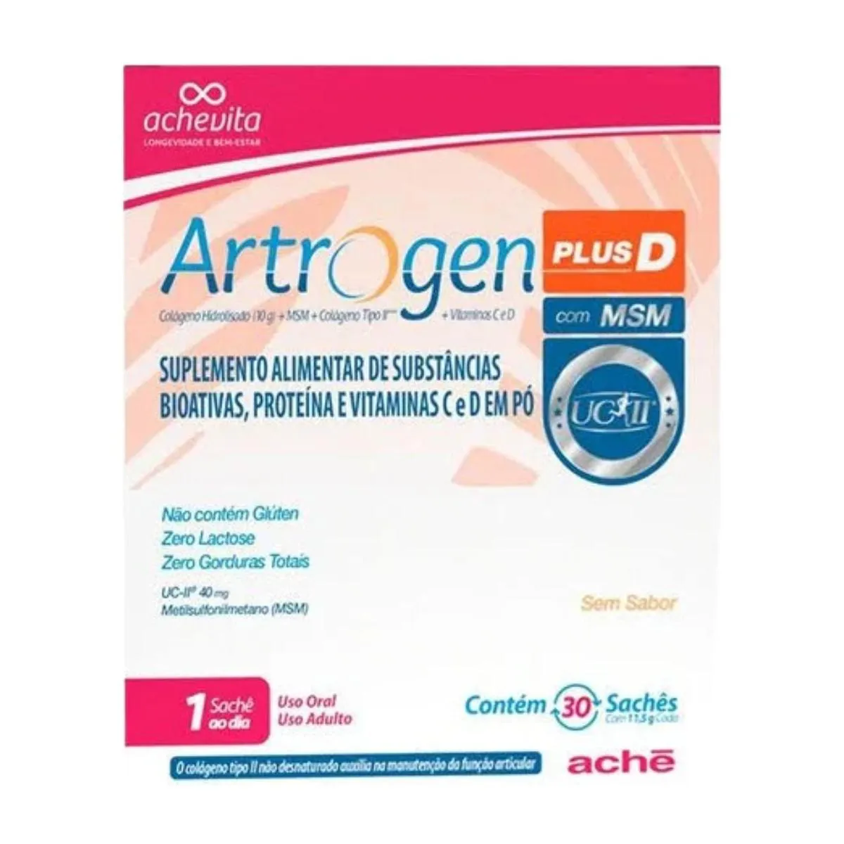 - O Artrogen Plus D é um suplemento alimentar em pó (sachê), formulado com substâncias bioativas:
