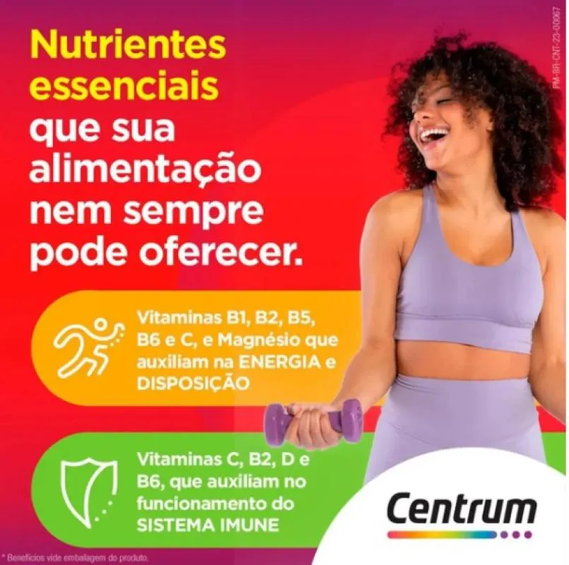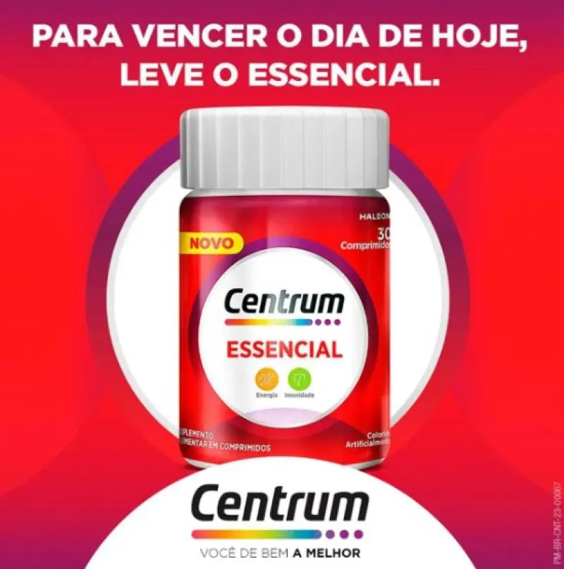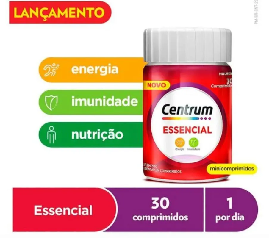 Centrum Essencial é um multivitamínico diário formulado com ingredientes essenciais que podem ser difíceis de se obter somente através da alimentação, para atender 100% da necessidade nutricional diária recomendada dos principais ingredientes¹. Com vitaminas do Complexo B e vitaminas C, D, E e Magnésio. Ajuda a melhorar a imunidade com Vitaminas C, D e B6, que auxiliam no funcionamento do sistema imune.