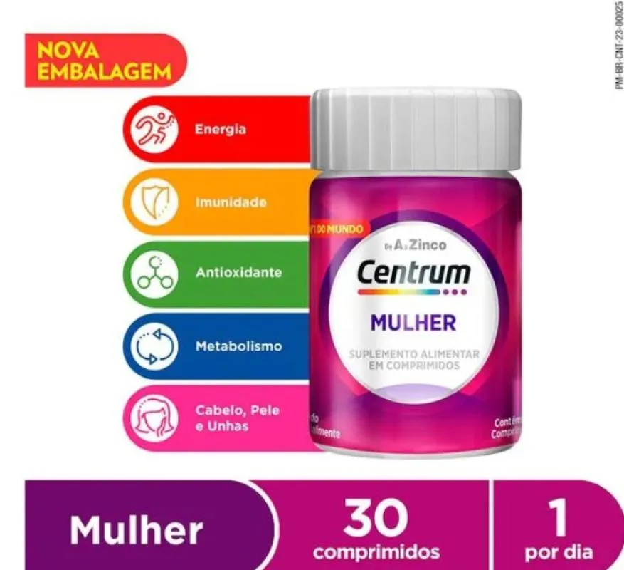 Centrum Mulher é um suplemento que contém micronutrientes e vitaminas de A a Zinco para apoiar o bem-estar do corpo inteiro e ajuda na saúde da pele, cabelos e unhas (1). Este multivitamínico contém vitamina d e cálcio que ajudam a fortalecer os ossos e vitaminas do Complexo B contribuindo para o aproveitamento da energia dos alimentos.