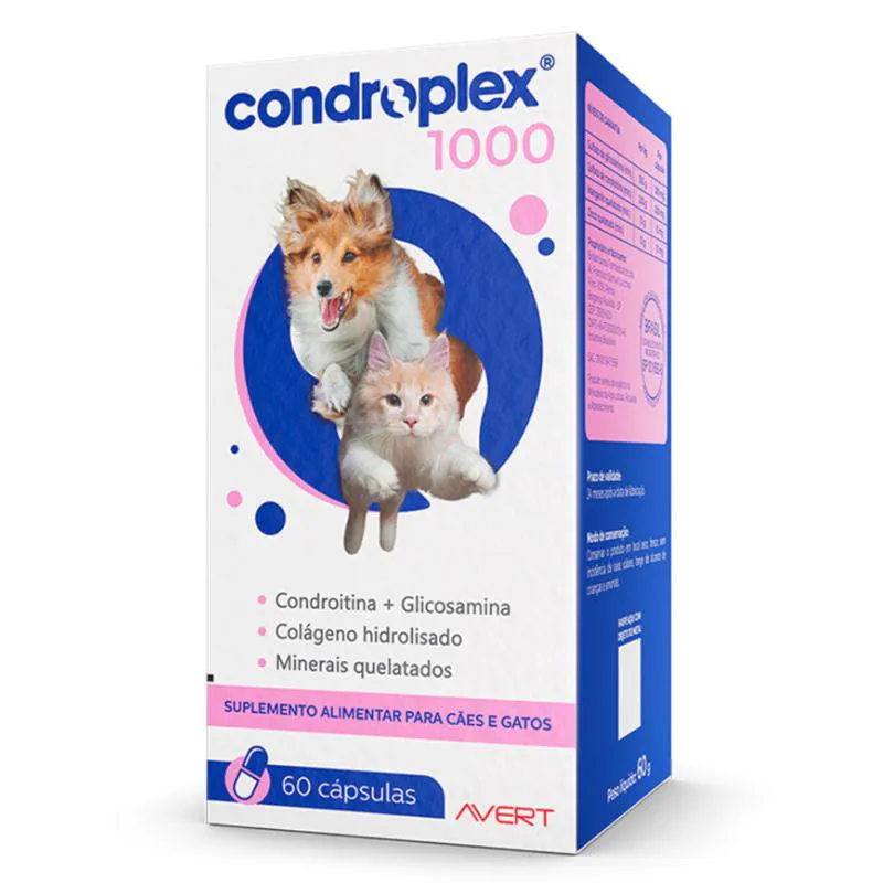 Suplemento Alimentar Condroplex 1000 Com 60 Cápsulas para Cães e Gatos
