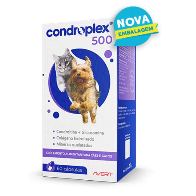 Suplemento Alimentar Condroplex 500 Com 60 Cápsulas Para Cães e Gatos