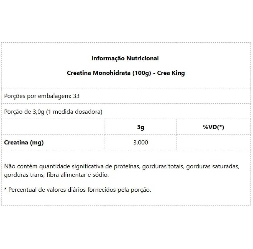 Suplemento Alimentar em Pó Creatina Monohidratada 100G Crea King Creatina 100% Pura