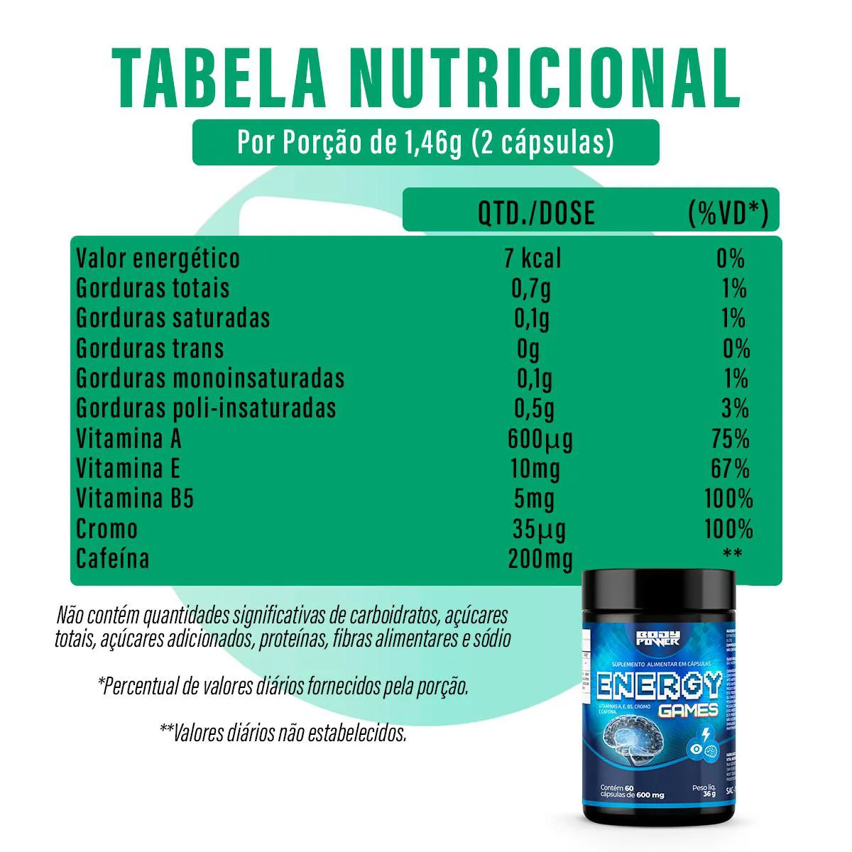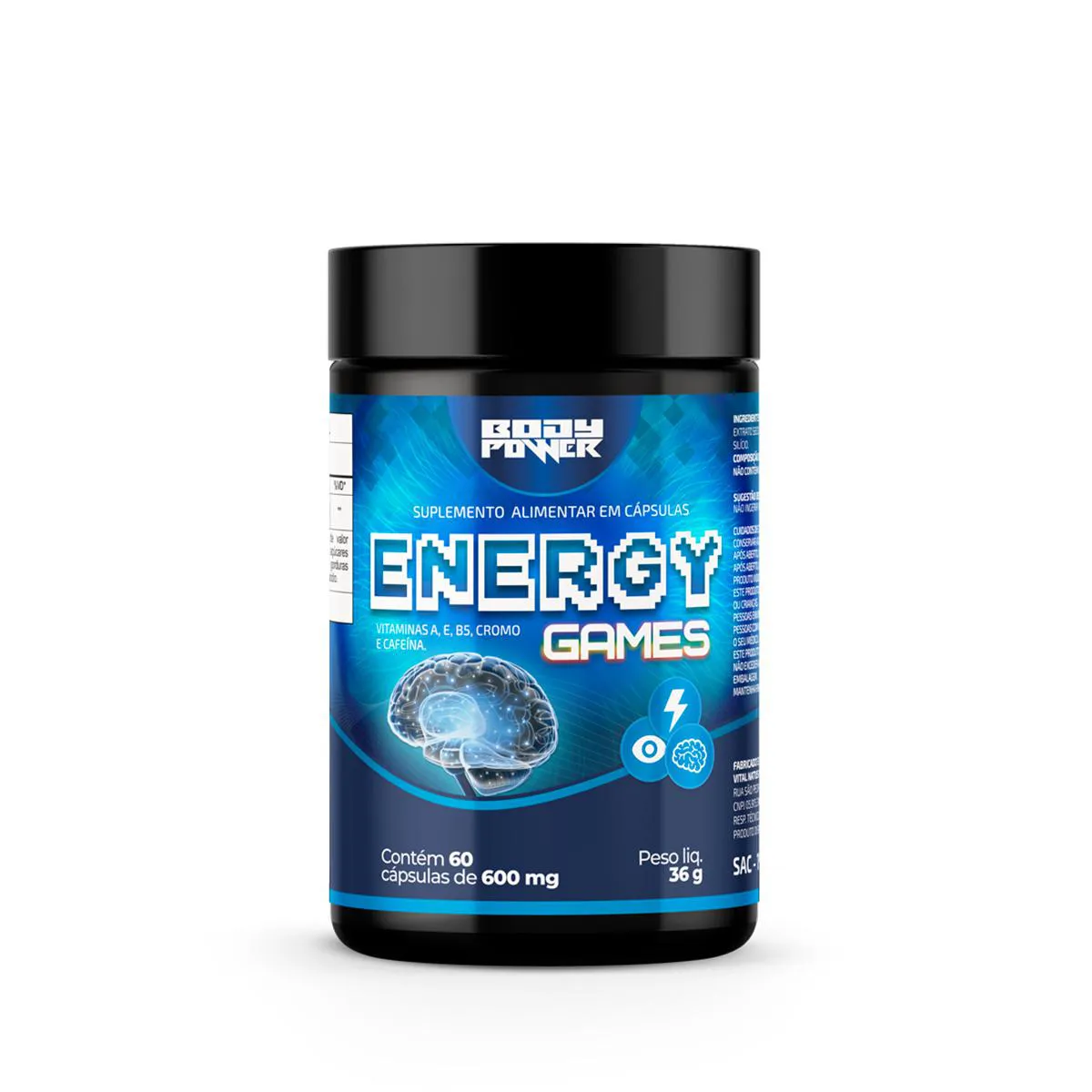 Nesta compra você receberá 1 frasco com 60cps de Energy Games da Body Power.