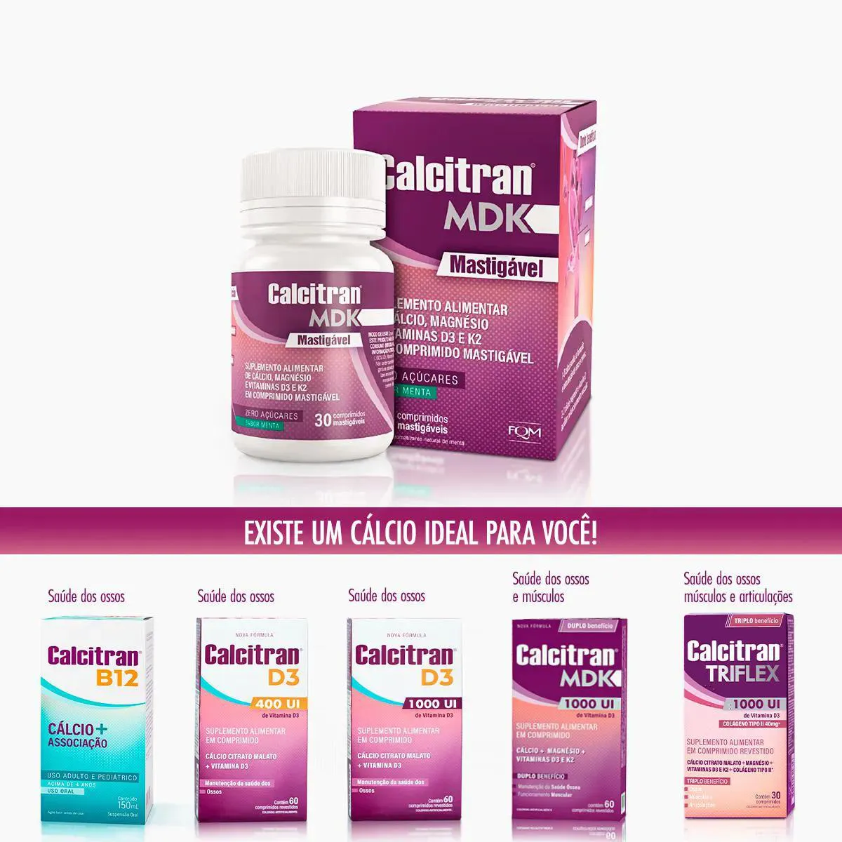 - Contém cálcio, magnésio e vitamina D3.