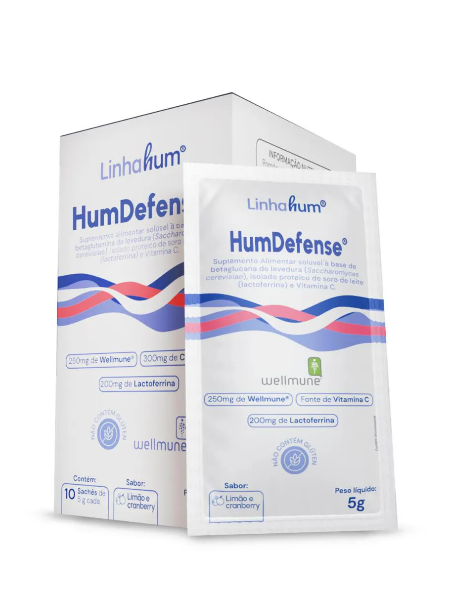 Defense é um suplemento alimentar em pó, estimulante das defesas naturais do organismo. Composto por betaglucana de levedura Wellmune® (250 mg), lactoferrina (100 mg), vitamina B12 (2 mcg) e vitamina c (25 mg).Sabor cranberry com limão. Caixa com 10 sachês de 5 g cada.Informações adicionais