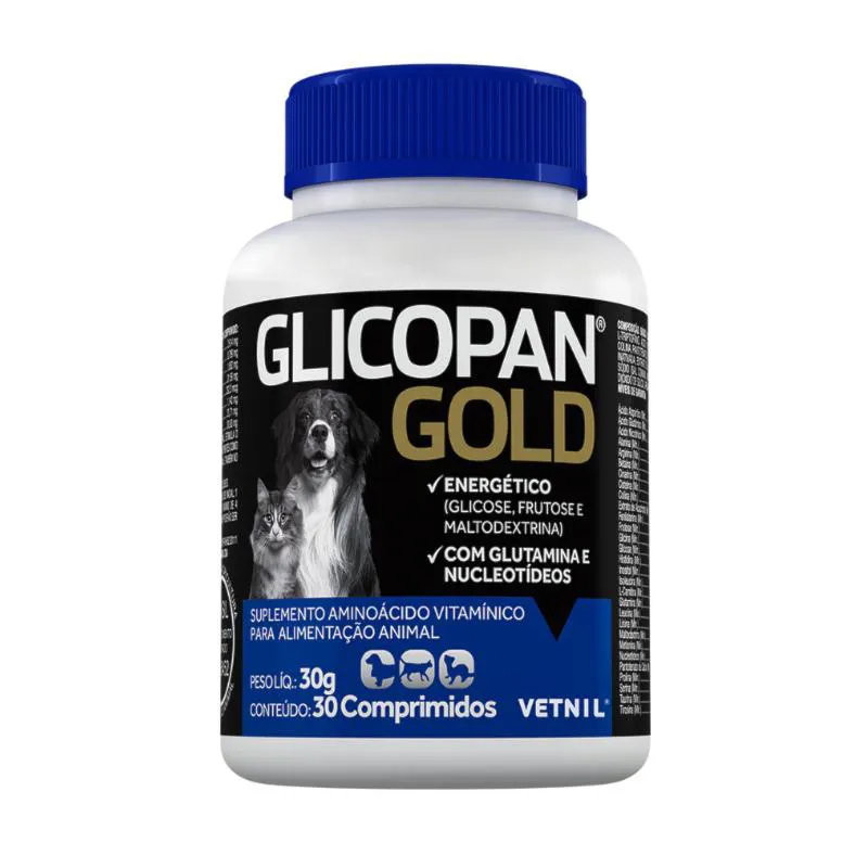 Suplemento Vitamínico Vetnil Glicopan Gold para Cachorros e Gatos 30 comprimidos
