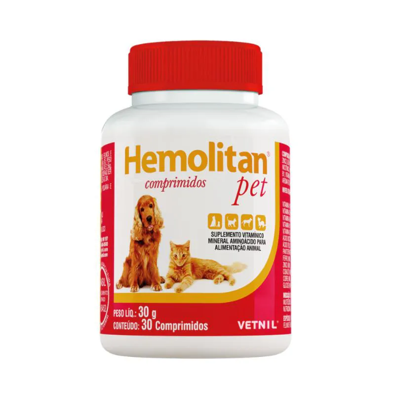 Suplemento Vitamínico Vetnil Hemolitan Pet para Cachorros e Gatos 30 Comprimidos