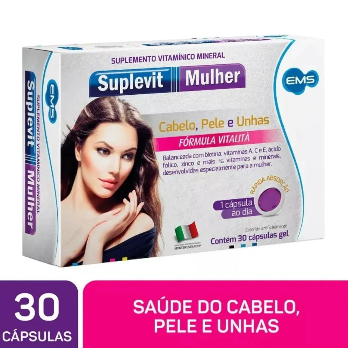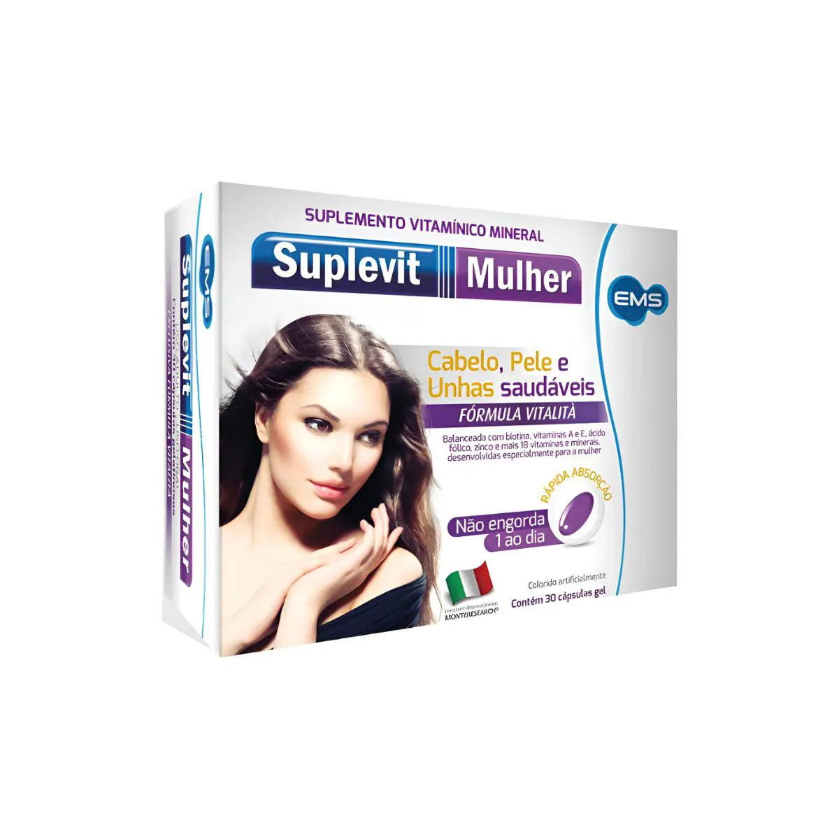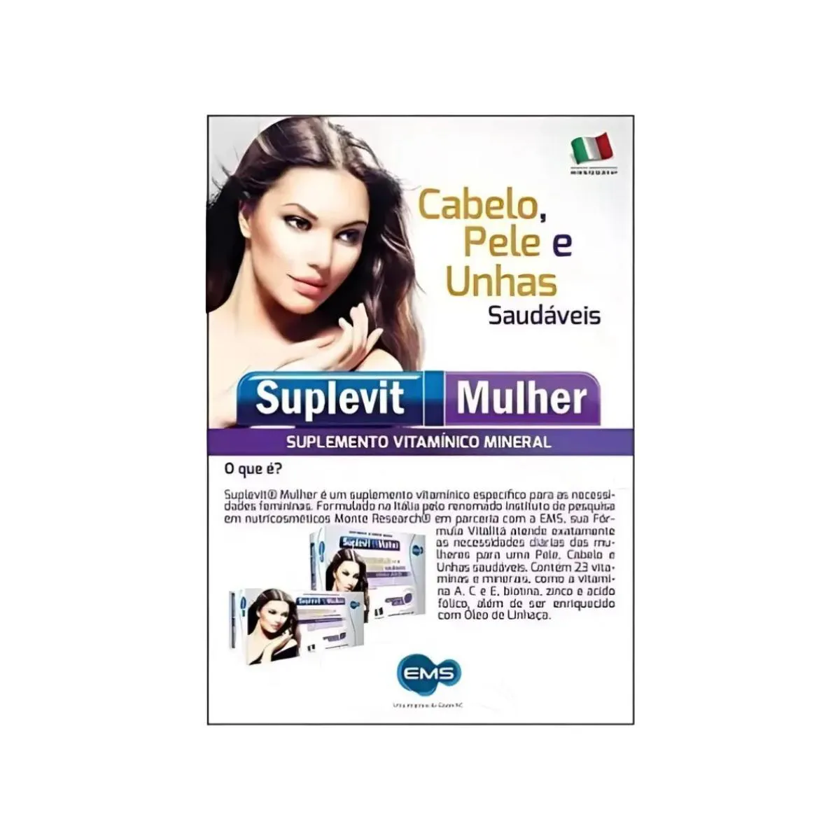 O Suplevit Mulher é um suplemento vitamínico-mineral em cápsulas, formulado especificamente para atender às necessidades nutricionais femininas. Contém uma combinação de vitaminas, minerais e micronutrientes essenciais que atuam de forma integrada na saúde estética e metabólica.