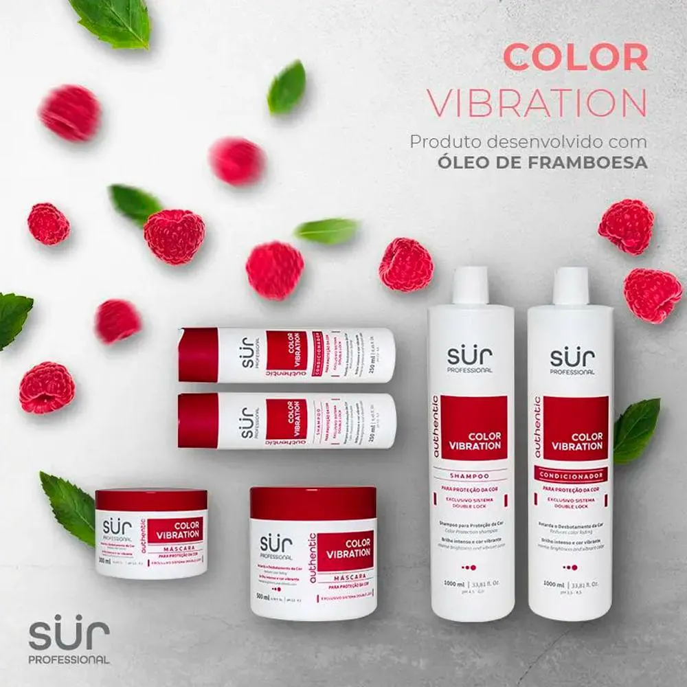 Com 1L de produto, o Sür Professional Color Vibration oferece um cuidado prolongado, promovendo fios mais fortes, nutridos e com a cor preservada por mais tempo. Ideal para quem deseja manter o cabelo com aspecto saudável e a cor intensa, sem comprometer a suavidade e o brilho.