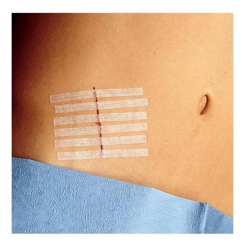 como complemento de suturas convencionais, aumentando a força de tensão e como suporte a ferida cirúrgica após a retirada da sutura convencional.