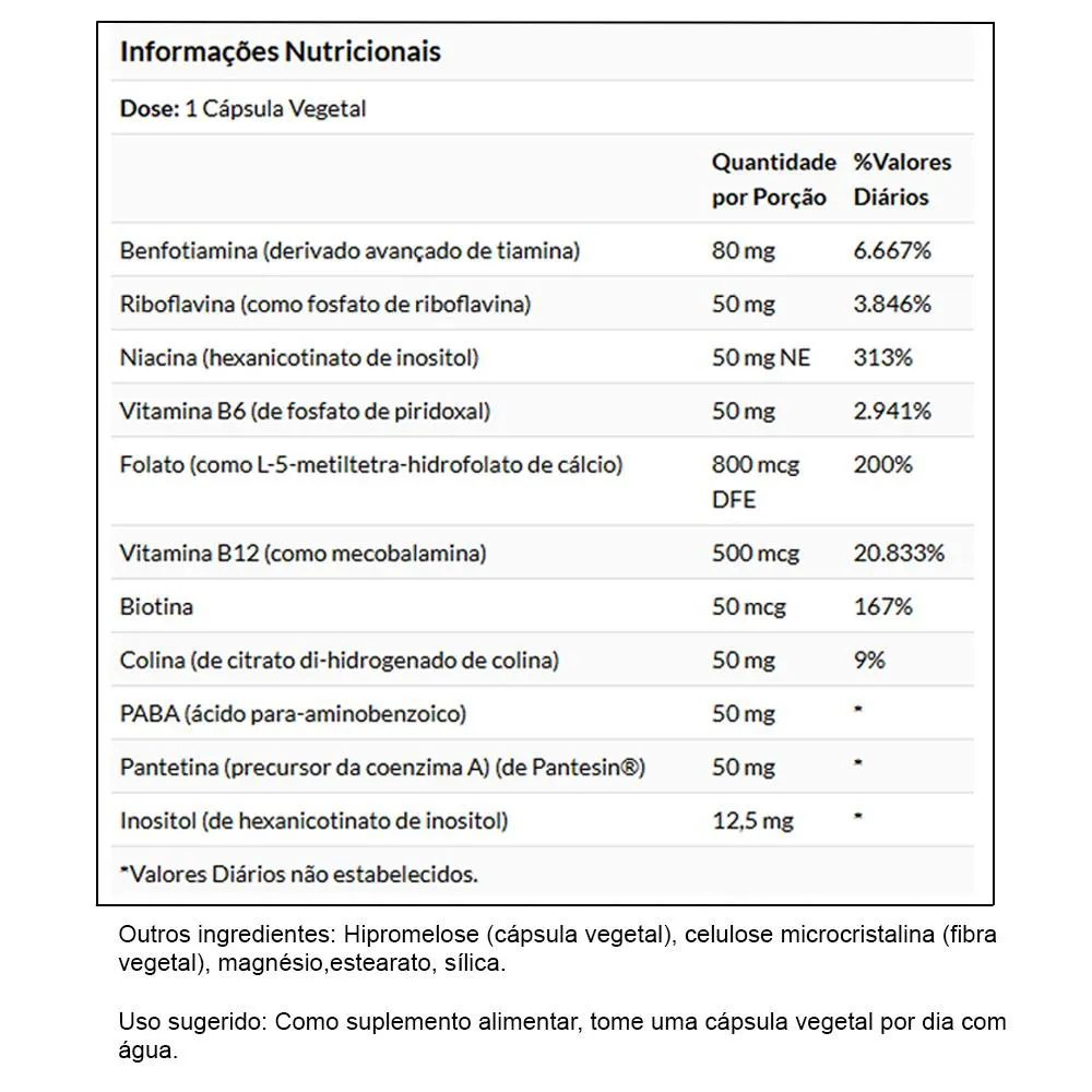 As vitaminas do complexo B desempenham papéis no metabolismo de carboidratos, proteínas e gorduras. Atuam também em processos relacionados à produção de energia e na manutenção de funções celulares, ajudando a manter o funcionamento adequado do organismo. 5. Quantidade no frasco e praticidade de uso