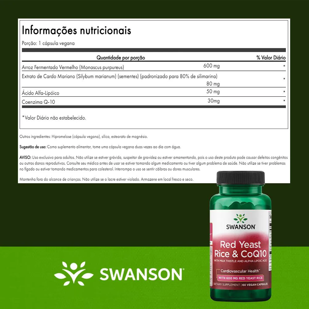 Swanson Arroz Vermelho Fermentado Coenzima Q10 60 Cápsulas