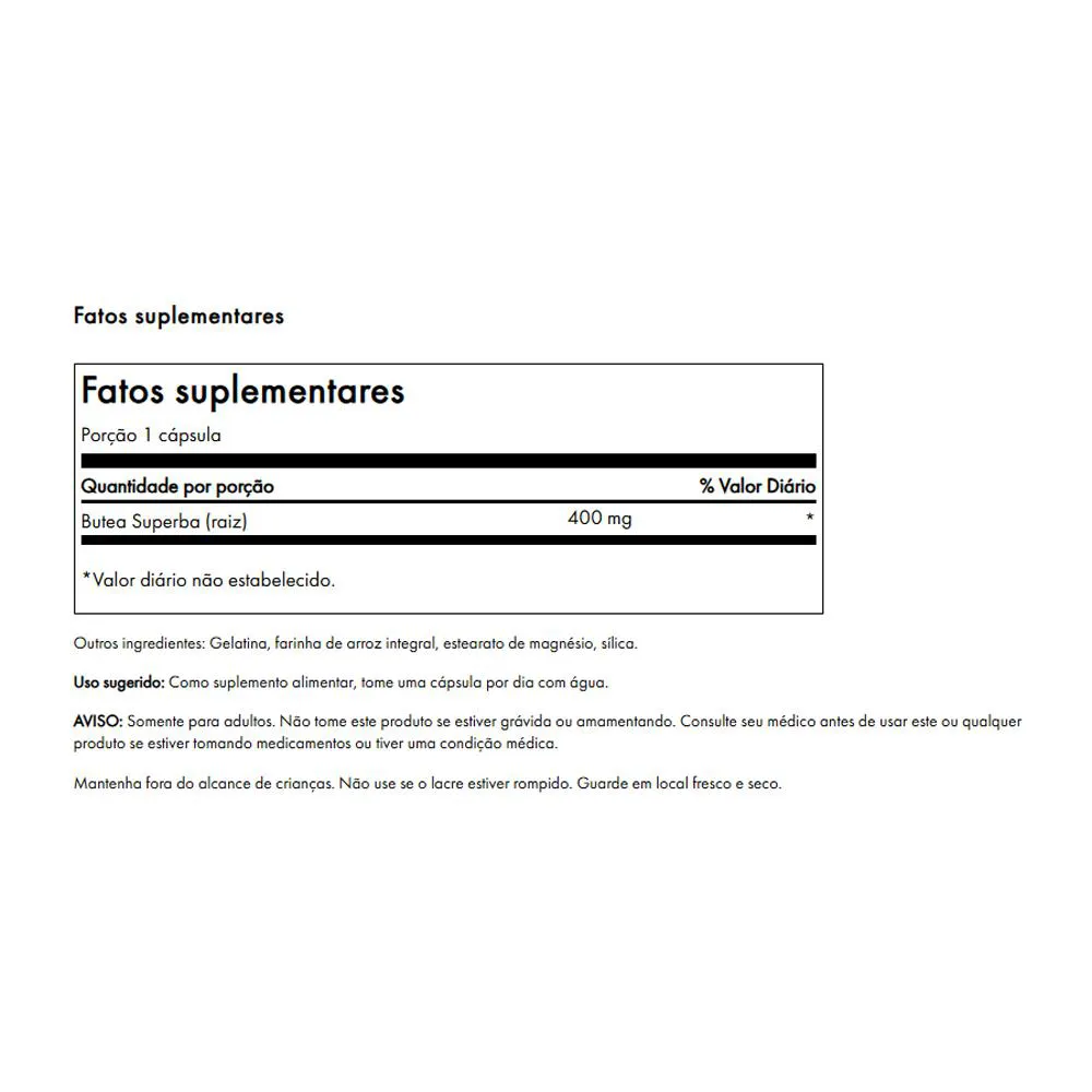 - Fornece suporte nutricional com dosagem precisa de 400mg de Raiz Butea Superba por cápsula.