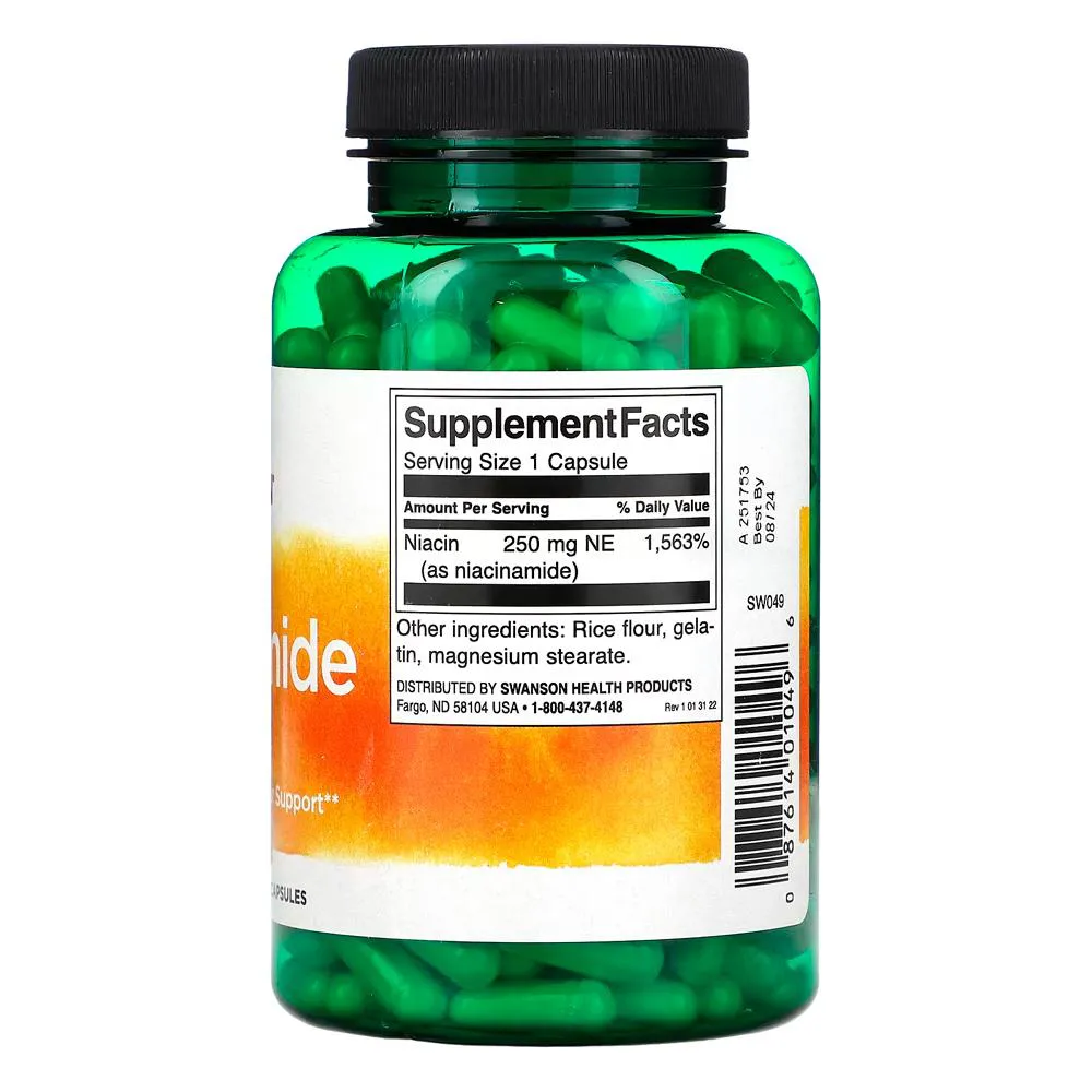 Niacinamida 250mg Swanson 250 Cápsulas Importado 1. Suporte essencial para o seu organismo