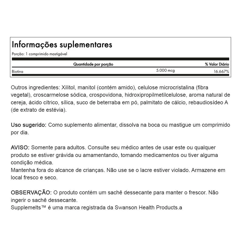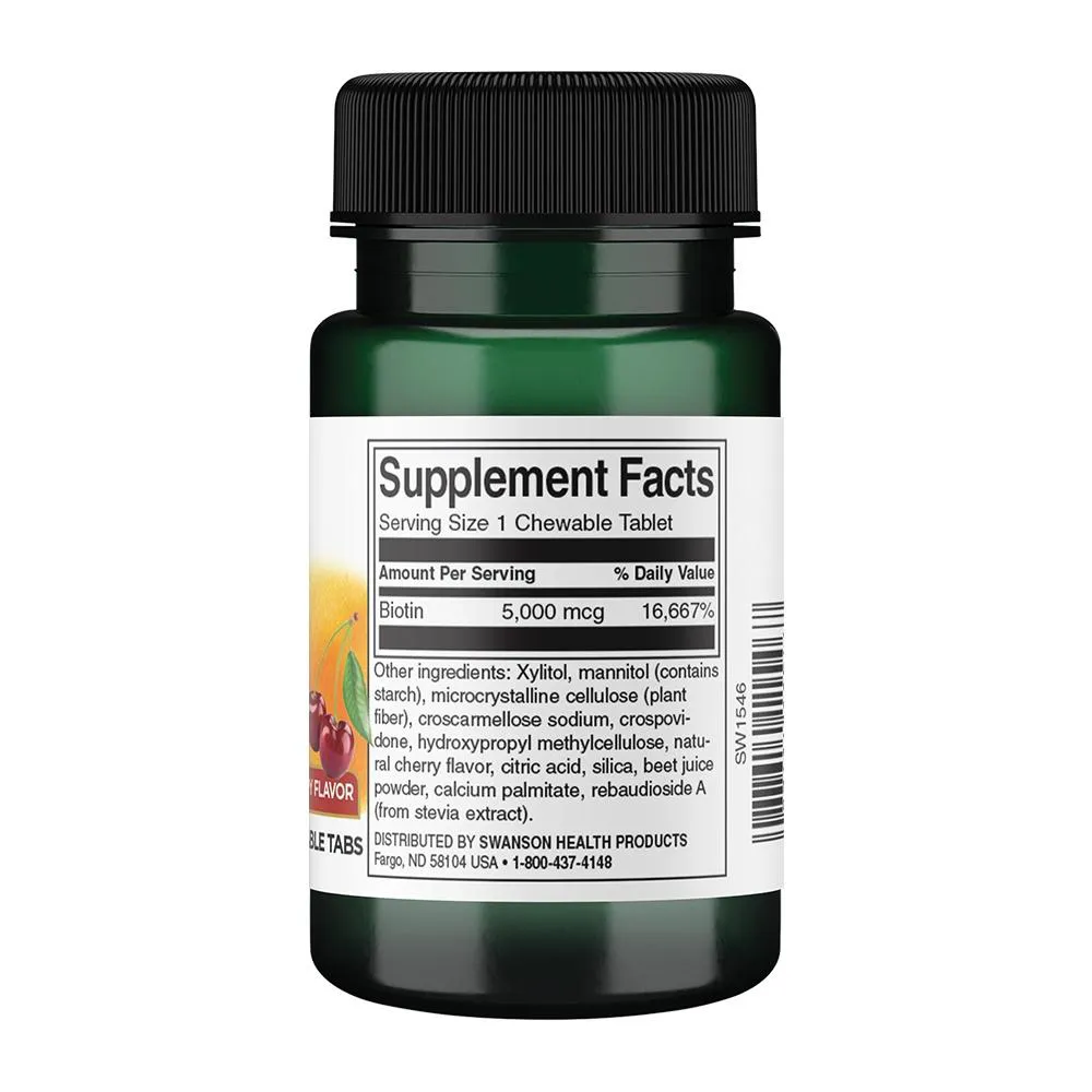 Swanson Supplemelts Biotin - Natural Cherry Flavor 5,000 Mcg 60 Chwbls Sw1546