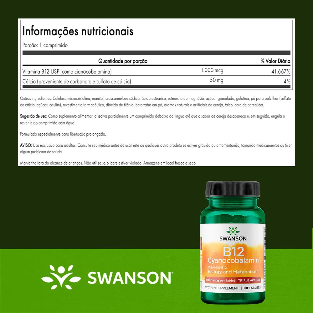 O que é e para que serve o Swanson Vitamina B12 1000Mcg 90Tabs Cianocobalamina Energia?