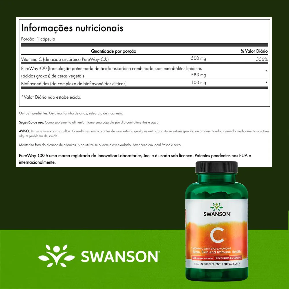 Swanson Vitamina C 500Mg Pureway-C Bioflavonoides 90 Cápsulas