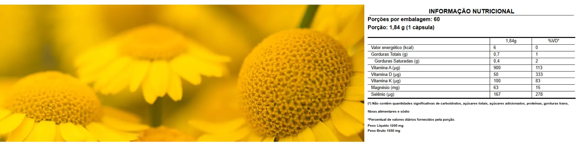 A fórmula de Synergy, além de vitamina D3, contém vitamina a, Vitamina K2, Magnésio e Selênio.