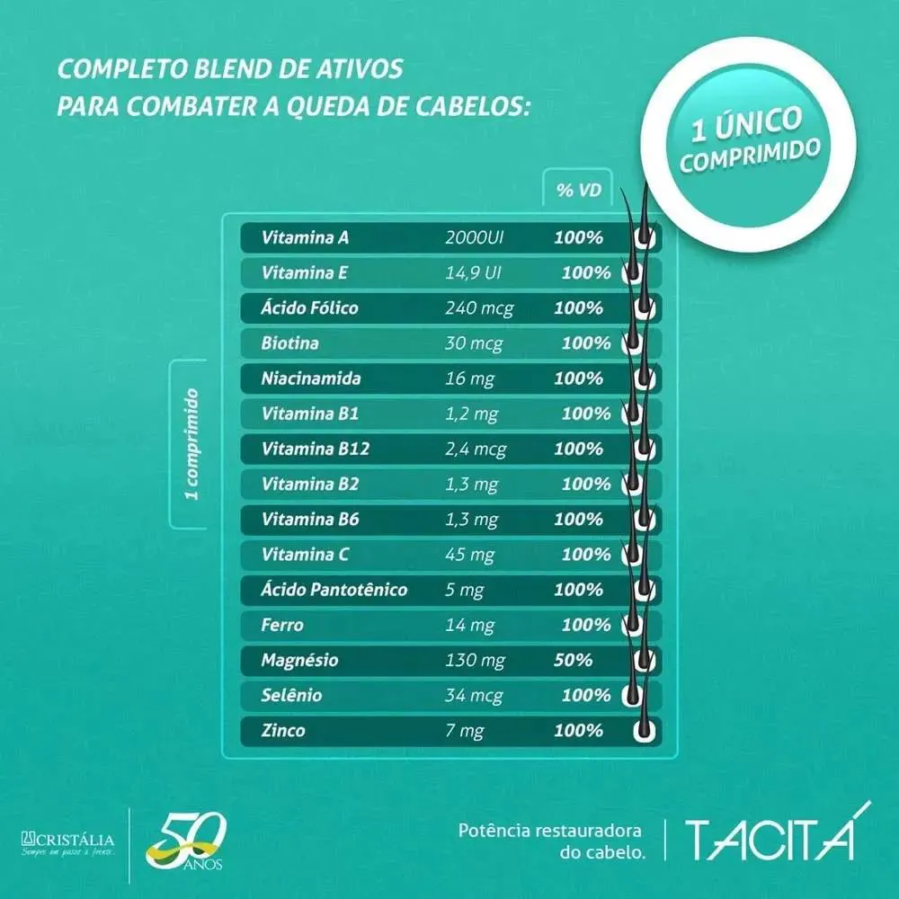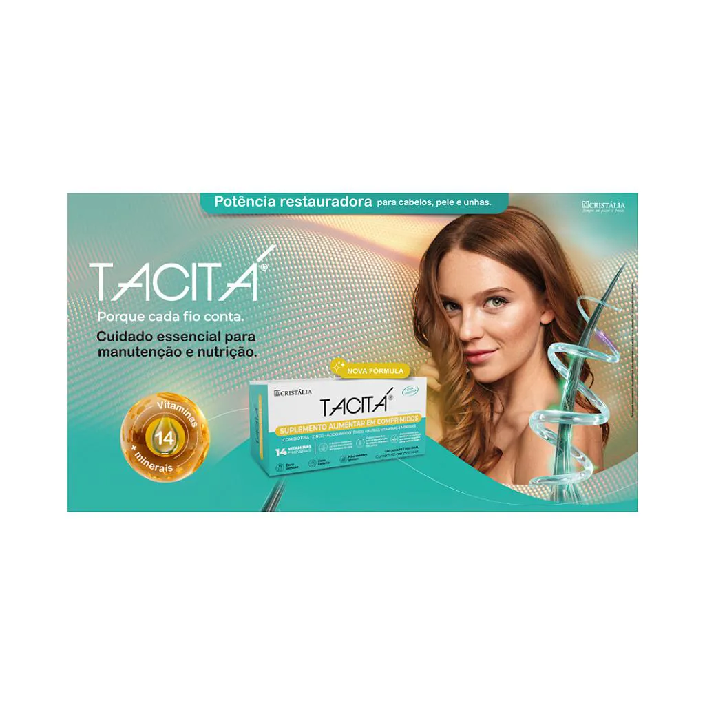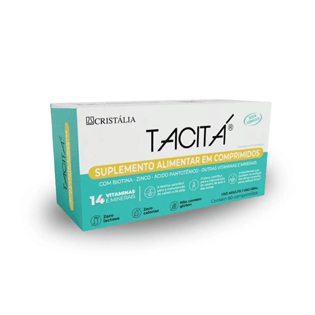 - Tacitá é um suplemento alimentar desenvolvido para complementar a rotina nutricional diária, oferecendo uma combinação equilibrada de vitaminas e minerais essenciais para o organismo. Sua fórmula foi pensada para auxiliar na manutenção da saúde, energia e bem-estar geral.