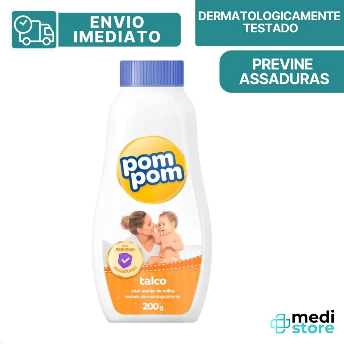Talco Pom Pom 200G Anti Assadura Suave com Amido de Milho