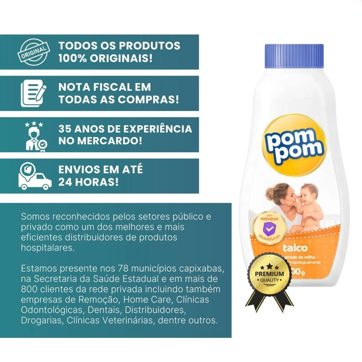 Desde 1990 atuamos com foco em licitações públicas para atendimento a hospitais e clínicas médicas do ES. Somos reconhecidos pelos setores público e privado como um dos melhores e mais eficientes distribuidores de produtos hospitalares, afinal, estamos presentes nos 78 municípios capixabas, na Secretaria da saúde Estadual e em mais de 800 clientes da rede privada, incluindo também empresas de Remoção, Home Care, Clínicas Odontológicas, Dentais, Distribuidores, Drogarias, Clínicas Veterinárias, dentre outros.