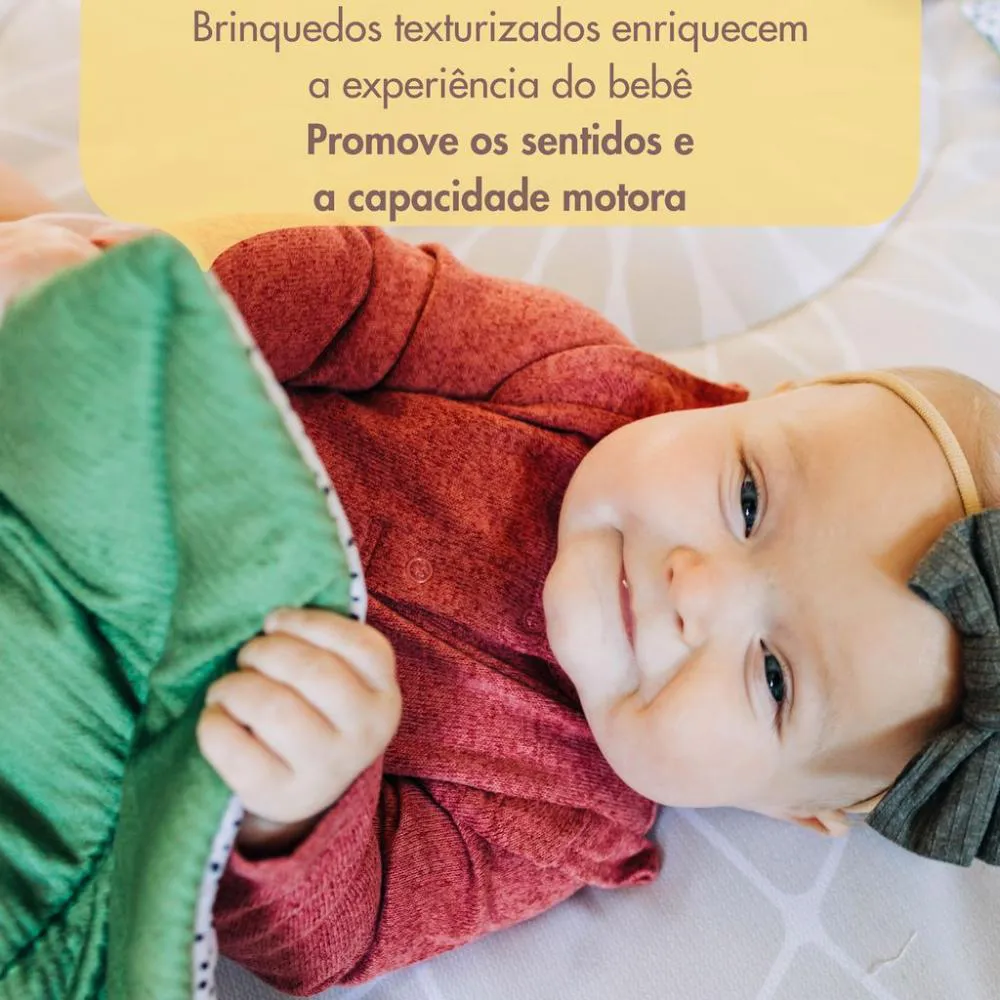 Use as atividades e diferentes texturas para incentivar seu bebê a passar mais tempo de bruços, fortalecendo os músculos em preparação para os marcos de desenvolvimento à frente. Chame a atenção do seu bebê para as várias texturas do brinquedo de planta crocante ou direcione seu olhar para o reXexo no espelho.