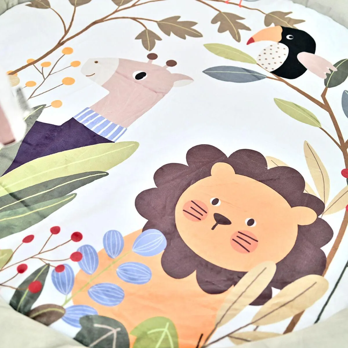 Tapete Ginásio de Atividades Bebê Musical Zoo - Maxi Baby O Tapete de LED para Bebê - Zoo é a escolha ideal para proporcionar momentos de diversão e desenvolvimento ao seu pequeno. Com um design encantador e educativo, este tapete é perfeito para bebês a partir de 2 meses, suportando até 18 kg. Ele possui uma estrutura robusta composta por 70% poliéster, 20% ABS e 10% PP, garantindo durabilidade e segurança. Quando aberto, o tapete mede 85 x 85 x 50 cm, oferecendo um espaço amplo e confortável para o bebê brincar. Equipado com duas barras e cinco brinquedos de pelúcia em forma de animais, cada um com papel de ruído, ele incentiva a interação e a curiosidade do bebê. A caixa de música, com oito melodias diferentes, e a unidade de luz LED espelhada com função musical, proporcionam uma experiência sensorial completa, estimulando os sentidos do bebê com sons suaves e luzes agradáveis. Principais Características: