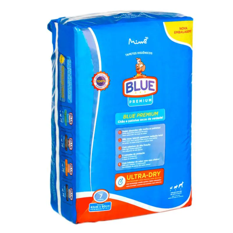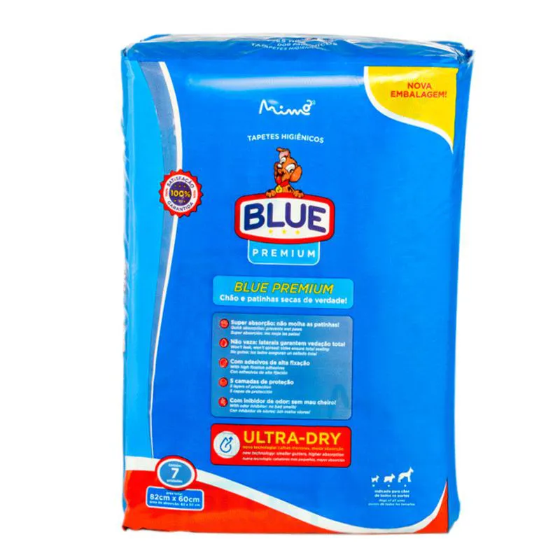 Tapete Higiênico Blue Original Premium com 07 Unidades de 82X60Cm