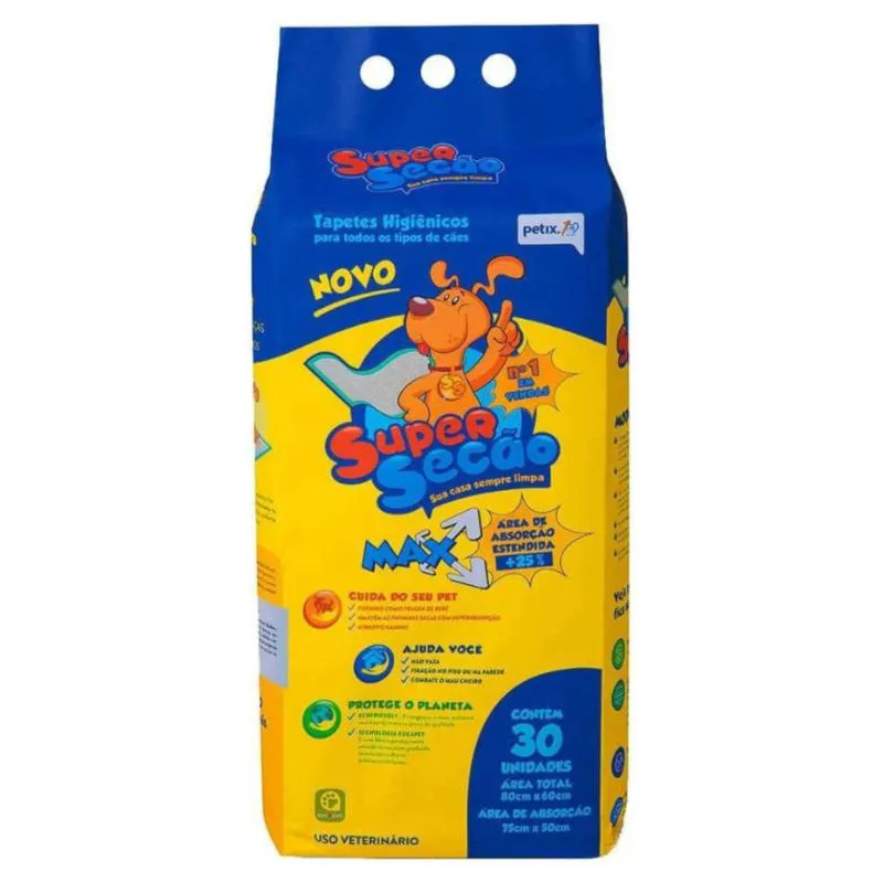 Tapete Higiênico Super Secão Max 80x60cm 30UN para Cães