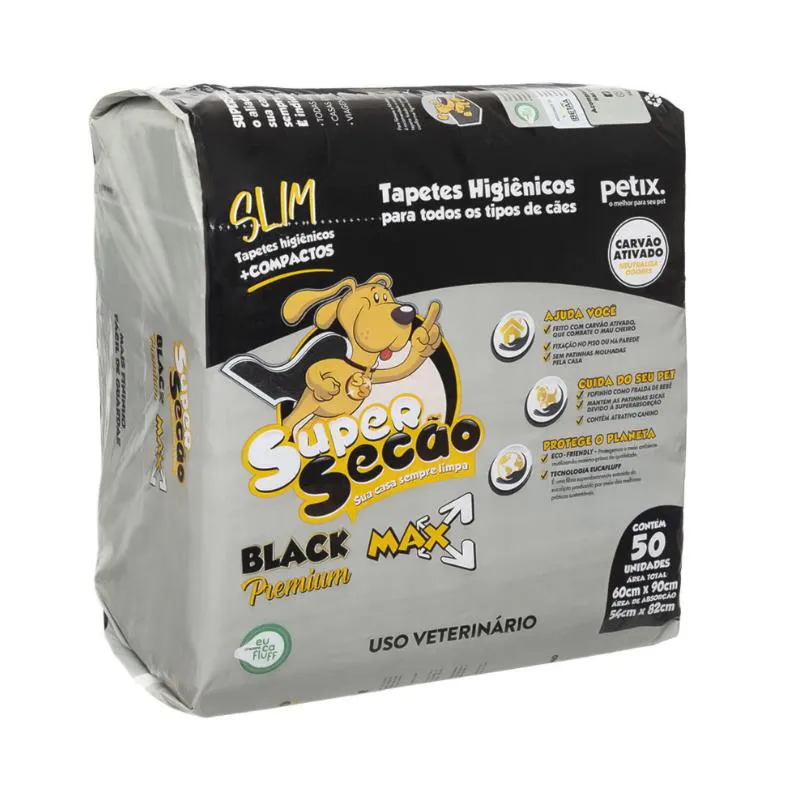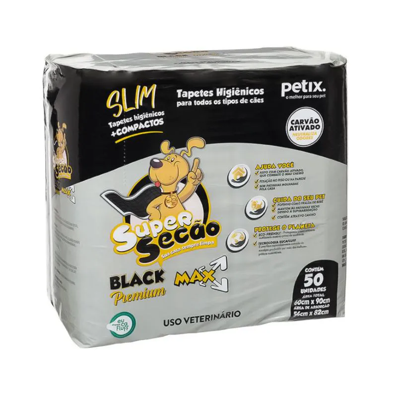 Tapete Higiênico Super Secão Slim Black 50UN 60X90CM para Cães