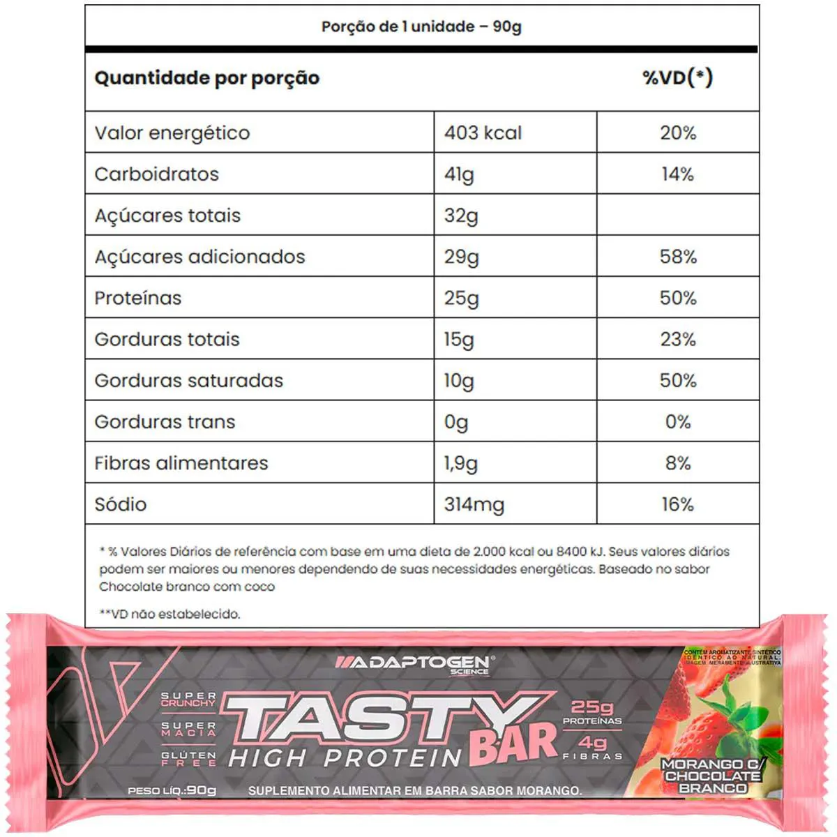 Tasty Bar Caixa 90g é a opção perfeita para quem busca uma opção deliciosa e saudável para complementar sua rotina nutricional. Com um sabor irresistível de chocolate branco, essa barra de cereais é ideal para ser consumida como um lanche rápido ou como um pré ou pós-treino. Desenvolvido pela marca Adaptogen, o Tasty Bar é uma excelente fonte de proteína, sendo uma opção ideal para atletas e pessoas que buscam manter uma alimentação equilibrada. Além disso, o produto é livre de glúten, tornando-se uma opção inclusiva para pessoas com restrições alimentares. Cada unidade do Tasty Bar Caixa pesa 90g, proporcionando uma porção generosa e satisfatória. A caixa contém 8 unidades, totalizando 784g de sabor e nutrição. A embalagem prática e resistente garante a conservação do produto, mantendo sua qualidade e frescor por mais tempo. Recomendado para maiores de 19 anos, o Tasty Bar Caixa é uma opção versátil que pode ser consumida em qualquer momento do dia. Seja para matar a fome entre as refeições ou para repor as energias após uma atividade física intensa, essa barra de cereais é uma escolha inteligente e saborosa. Aproveite todos os benefícios do Tasty Bar Caixa 90g e experimente essa opção nutritiva e deliciosa. Adquira já o seu e desfrute de uma experiência única de sabor e saúde. Aviso legal