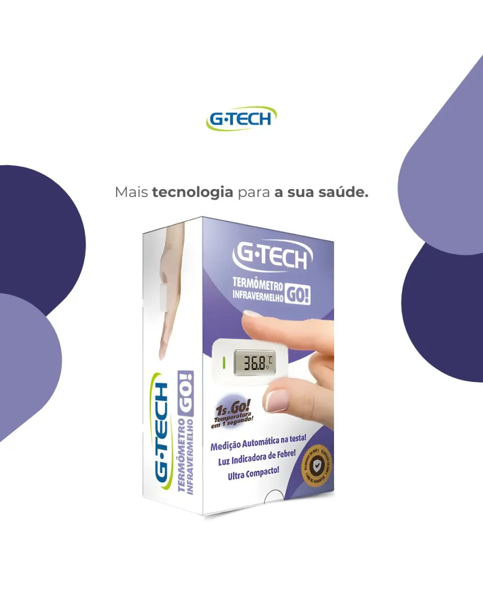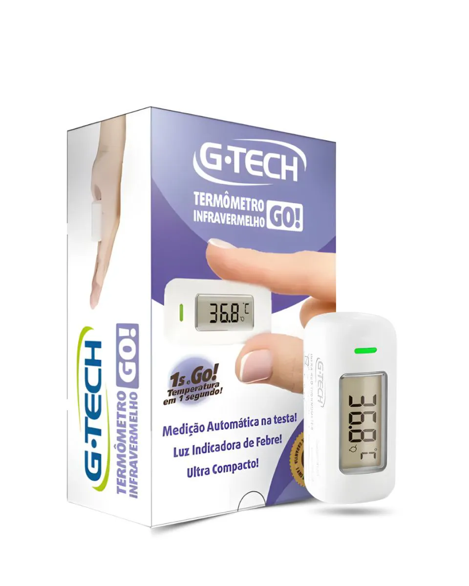 Os termômetros G-Tech são práticos e precisos, indicados para o controle da temperatura de toda a família. Termômetro infravermelho ultracompacto de testa G-Tech Go! O Termômetro digital infravermelho ultracompacto G-Tech Go! é ultraportátil, com apenas 4,8cm e 22g. Possui tecnologia de medição automática ao fazer contato com a pele da testa, tornando o ato prático e muito mais rápido. Para facilitar ainda mais o uso, as luzes indicadoras de estado de temperatura e alarme de estado febril, ajudam na rápida identificação dos resultados e a memória para 20 medições, permite um acompanhamento de longo prazo.